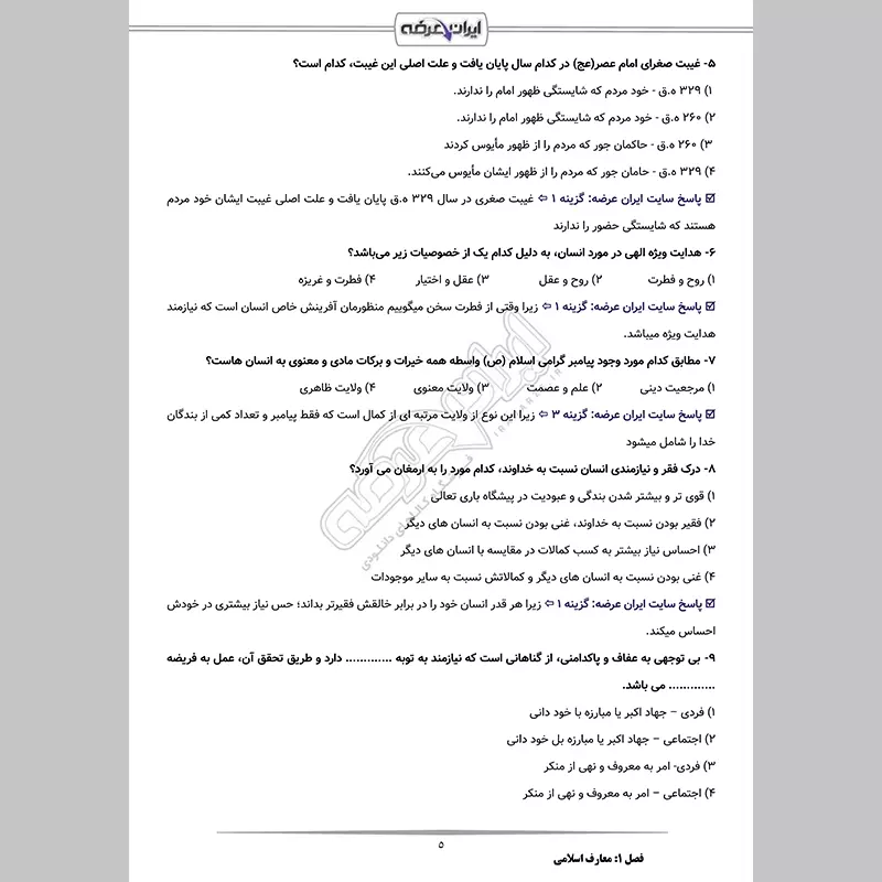 سوالات دروس عمومی آزمون های استخدامی با جواب (10 سال اخیر)