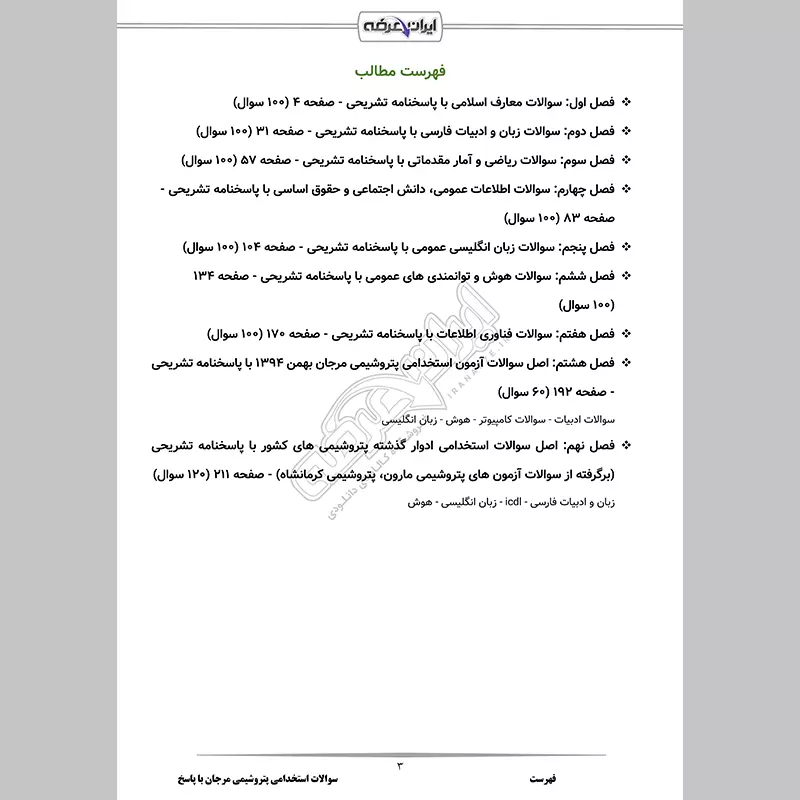 سوالات استخدامی پتروشیمی مرجان شامل 880 سوال با پاسخنامه تشریحی به شرح زیر:
