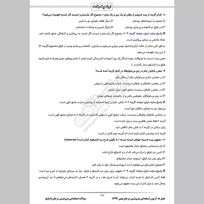 - فصل 8: اصل سوالات آزمون استخدامی پتروشیمی مرجان بهمن 1394 - صفحه 192 (60 سوال)