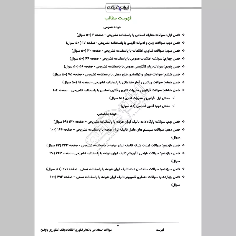 گروه آموزشی ایران عرضه اقدام به ارائه سوالات آزمون استخدامی بانکدار گروه فناوری اطلاعات بانک کشاورزی نموده است. این بسته شامل سوالات عمومی و تخصصی استاندارد و طبقه بندی شده طبق منابع اعلام شده، با پاسخنامه تشریحی میباشد. از سایر مزیت های این بسته دارا بودن قابلیت پرینت در فایل pdf می باشد. کارشناسان ما بر این باورند که این مجموعه عاملی مهم برای آمادگی شما در آزمون استخدامی بانکدار رشته فناوری اطلاعات بانک کشاورزی بوده و قدمی مهم برای موفقیت در آن خواهد بود.