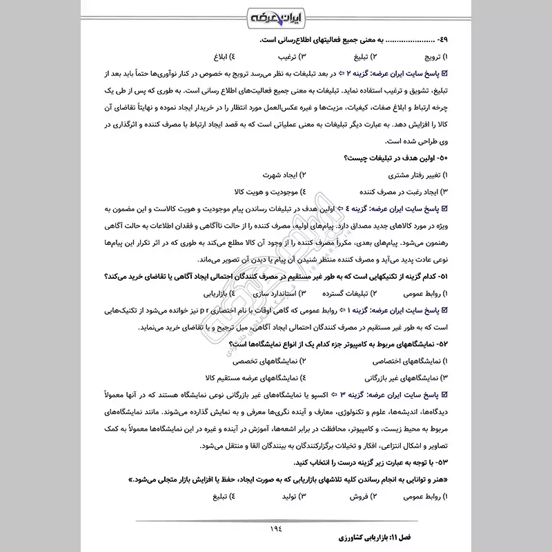 1404/09/12 اضافه شدن سوالات جدید به فصل یازدهم (بازاریابی کشاورزی)