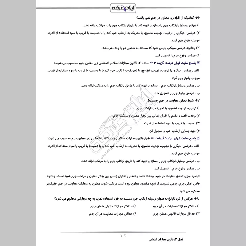 سوالات استخدامی قانون مجازات اسلامی با جواب