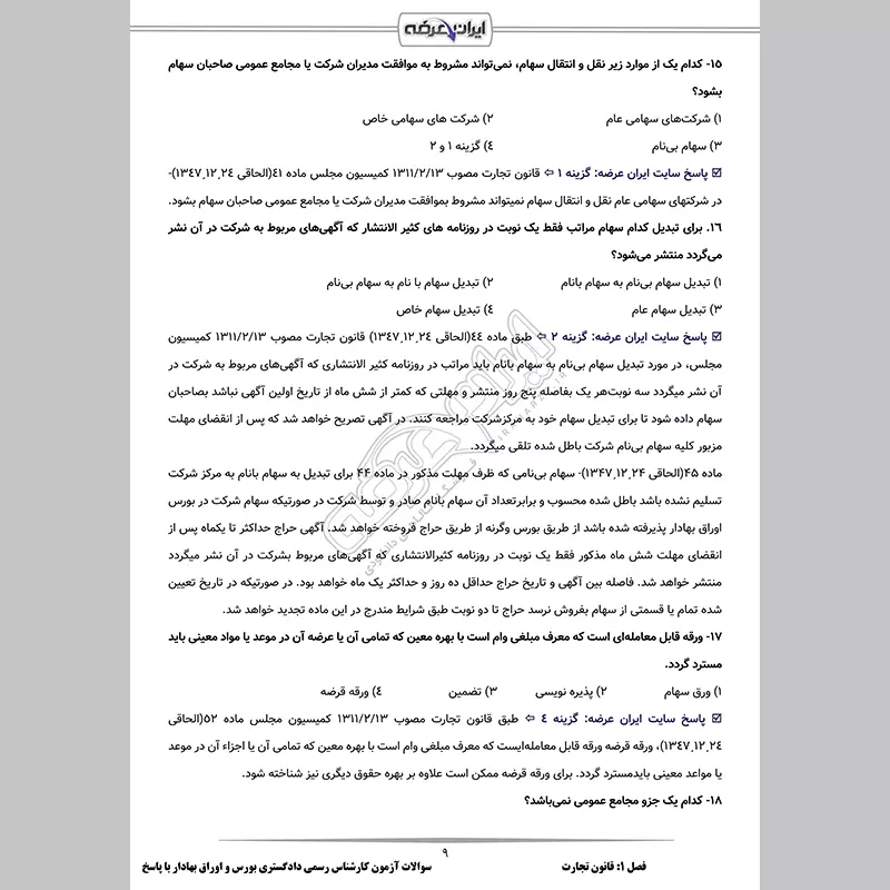 سوالات آزمون کارشناسی رسمی دادگستری با جواب