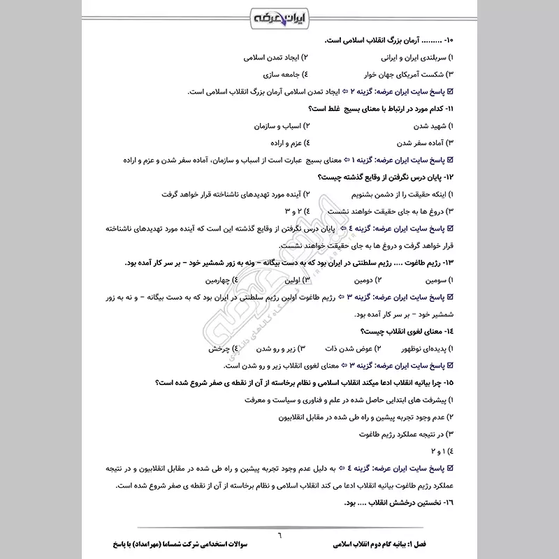 سوالات استخدامی بیانیه گام دوم انقلاب اسلامی با جواب
