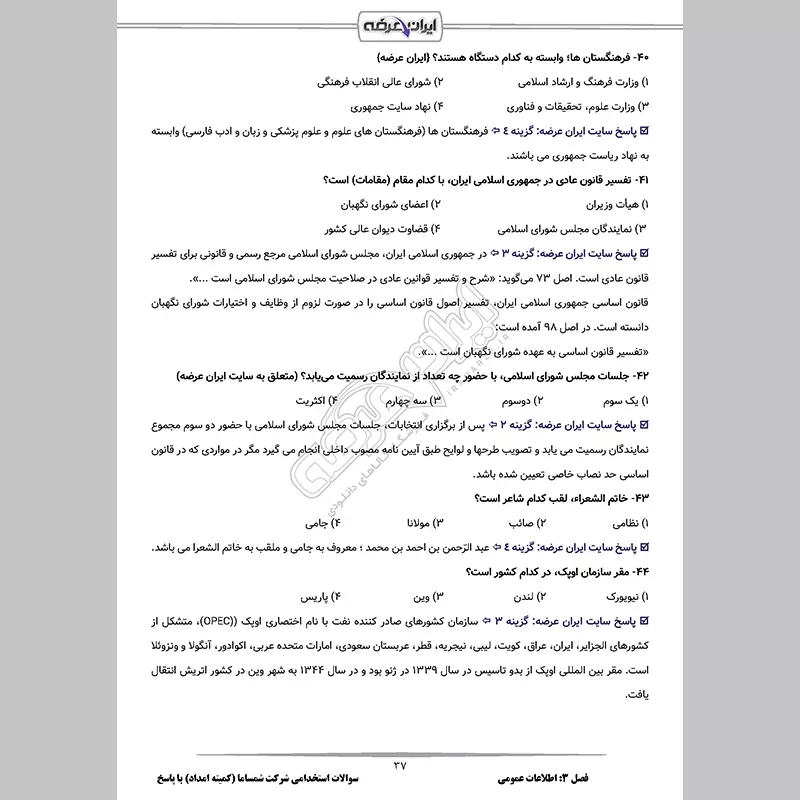 سوالات استخدامی حقوق و قانون اساسی ایران با جواب