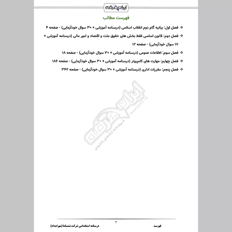 گروه آموزشی ایران عرضه اقدام به ارائه بسته ای جدید برای درسنامه آزمون استخدامی شرکت مهندسی سرمایه انسانی مهرامداد نموده است. این محصول شامل جزوه آموزشی، نکات مهم و سوالات خودآزمایی آزمون استخدامی مدیر جوان و کارآمد می باشد که در دو نسخه pdf و چاپی قابل دریافت است. کارشناسان ما بر این باورند که این مجموعه عاملی مهم برای آمادگی شما در این آزمون بوده و قدمی مهم برای موفقیت در آن خواهد بود. با مطالعه این جزوه آموزشی در زمان کوتاه مهم ترین مطالب منابع آزمون استخدامی شرکت شمساد وابسته به کمیته امداد خمینی (ره) را فرا خواهید گرفت.