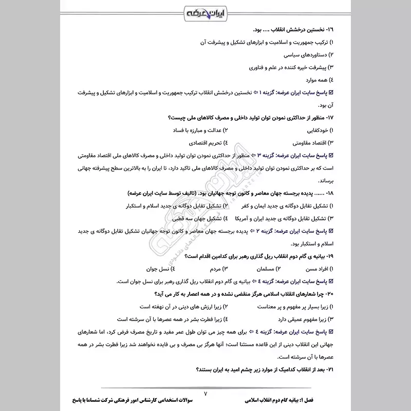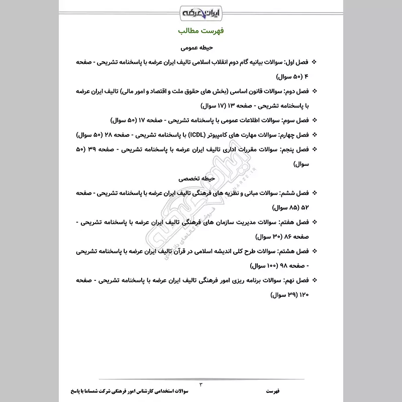 گروه آموزشی ایران عرضه اقدام به ارائه مجموعهای کارآمد از سوالات آزمون استخدامی کارشناس امور فرهنگی شرکت شمساما وابسته به کمیته امداد امام خمینی (ره) نموده است. این بسته با تمرکز بر سوالات کلیدی و پرتکرار طراحی شده تا امکان مرور در کوتاهترین زمان را برای داوطلبان فراهم کند.
