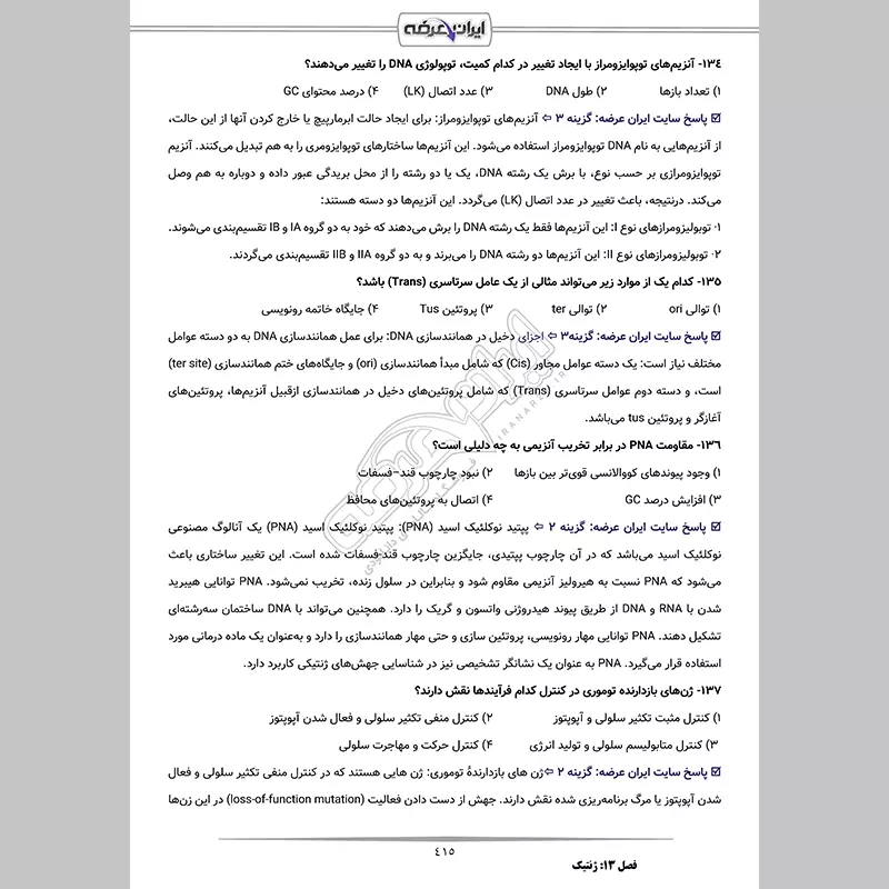 1404/10/08 اضافه شدن سوالات جدید به فصل های یازدهم و سیزدهم (سوالات سلولی و مولکولی، ژنتیک)