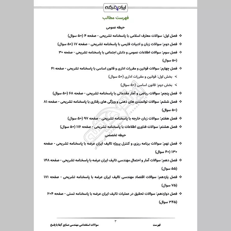 گروه آموزشی ایران عرضه اقدام به ارائه سوالات آزمون استخدامی مهندسی صنایع شرکت آب و فاضلاب نموده است. این بسته شامل سوالات عمومی و تخصصی با پاسخنامه تشریحی و قابلیت پرینت برای آزمون استخدامی مهندسی صنایع شرکت آب و فاضلاب میباشد. کارشناسان ما بر این باورند که این مجموعه عاملی مهم برای آمادگی شما در این آزمون بوده و قدمی مهم برای موفقیت در آن خواهد بود.