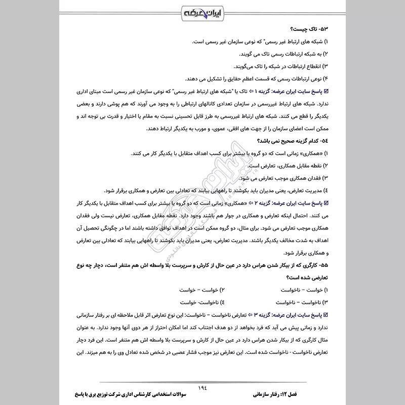 • فصل 12: سوالات رفتار سازمانی تالیف ایران عرضه - صفحه 174 (75 سوال)