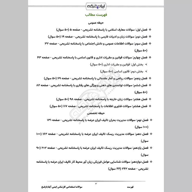 گروه آموزشی ایران عرضه اقدام به ارائه سوالات آزمون استخدامی کارشناس ایمنی، مدیریت بحران و بهداشت حرفه ای شرکت آب و فاضلاب نموده است. این بسته شامل سوالات عمومی و تخصصی با پاسخنامه تشریحی و قابلیت پرینت برای آزمون استخدامی کارشناس ایمنی، مدیریت بحران و بهداشت حرفه ای شرکت آب و فاضلاب میباشد. کارشناسان ما بر این باورند که این مجموعه عاملی مهم برای آمادگی شما در این آزمون بوده و قدمی مهم برای موفقیت در آن خواهد بود.