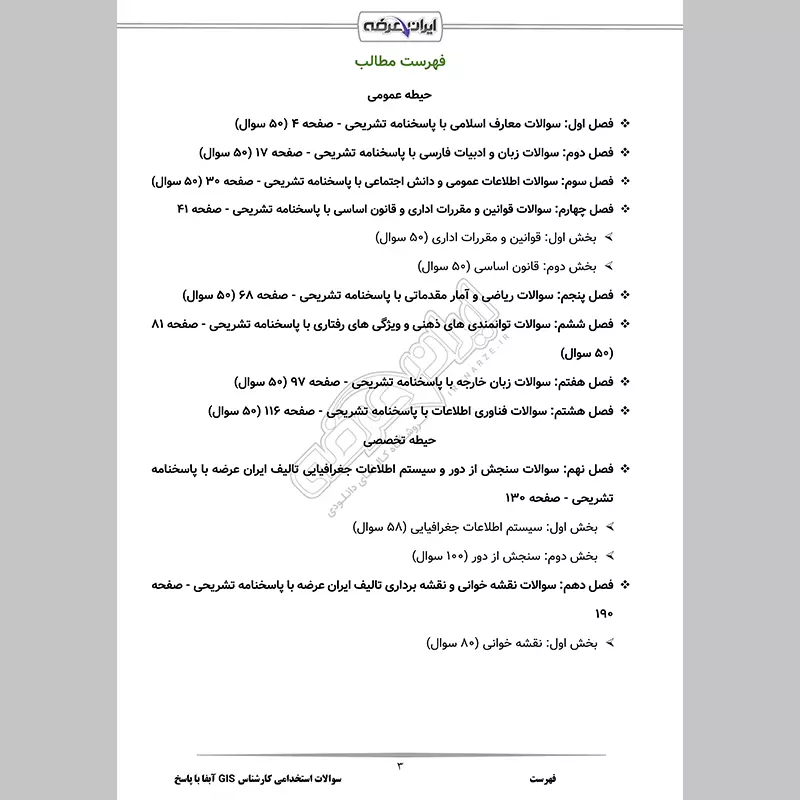 گروه آموزشی ایران عرضه اقدام به ارائه سوالات آزمون استخدامی کارشناس GIS (سامانه اطلاعاتی جغرافیایی) شرکت آب و فاضلاب نموده است. این بسته شامل سوالات عمومی و تخصصی با پاسخنامه تشریحی و قابلیت پرینت برای آزمون استخدامی کارشناس GIS شرکت آب و فاضلاب میباشد. کارشناسان ما بر این باورند که این مجموعه عاملی مهم برای آمادگی شما در این آزمون بوده و قدمی مهم برای موفقیت در آن خواهد بود.