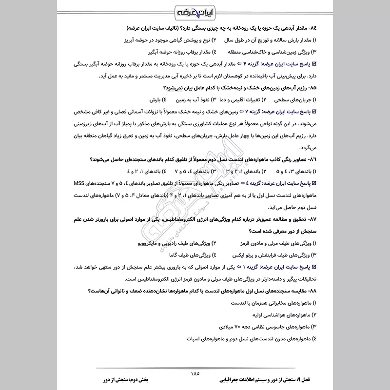1404/10/20 اضافه شدن سوالات جدید به فصل نهم (سوالات سنجش از دور)