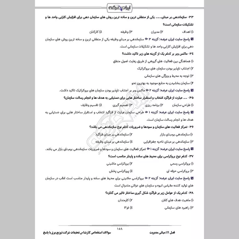 • فصل 11: سوالات مبانی مدیریت تالیف ایران عرضه - صفحه 151 (60 سوال)