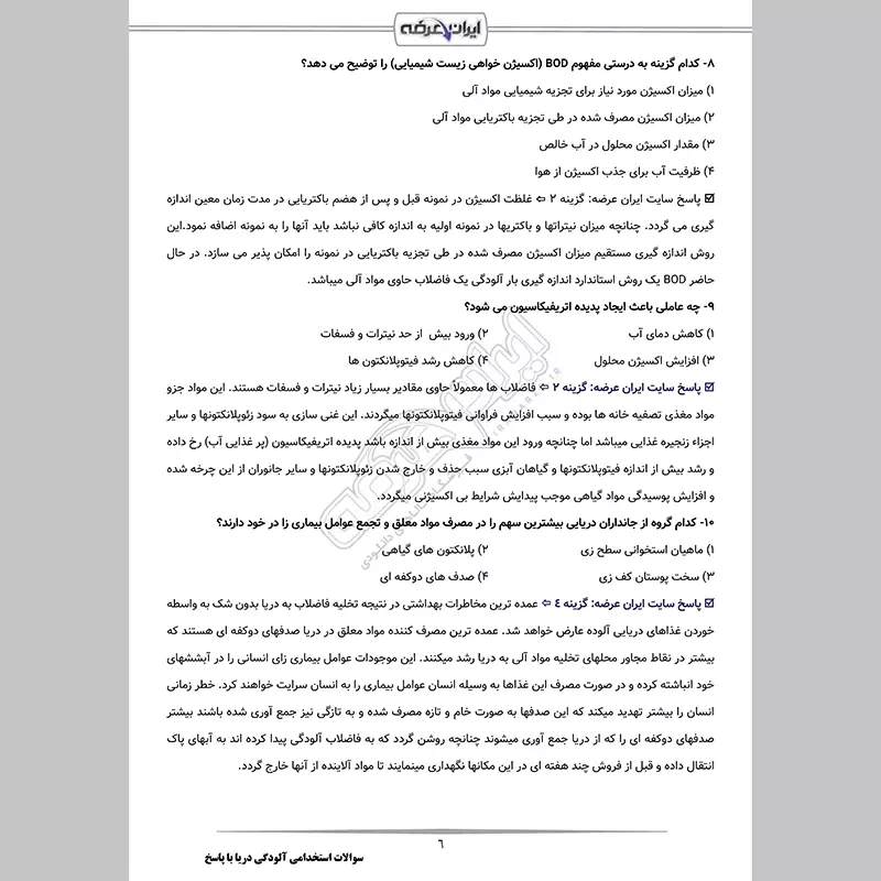 سوالات استخدامی کارشناس زیستگاه های آبی با جواب