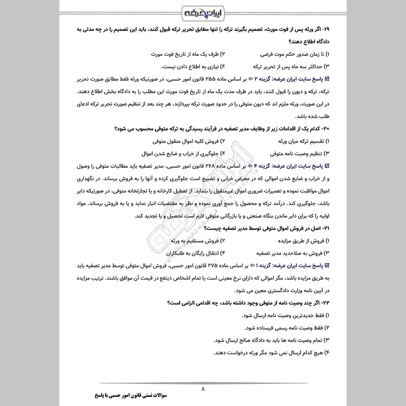 • سوالات تستی قانون امور حسبی شامل 30 سوال با پاسخنامه تشریحی