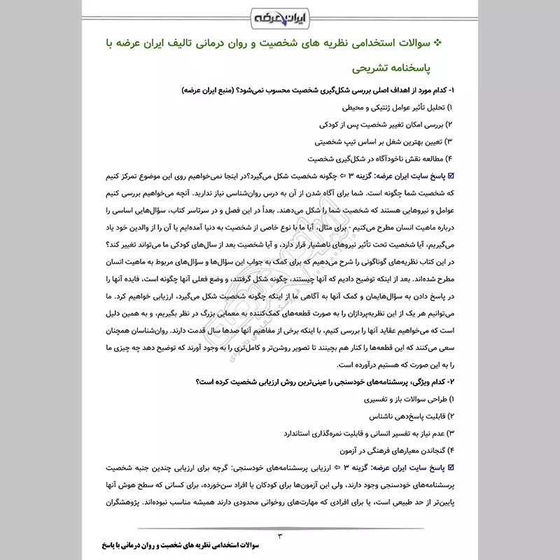 گروه آموزشی ایران عرضه اقدام به ارائه بسته ای جدید برای سوالات تستی نظریه های شخصیت و روان درمانی نموده است. این مجموعه شامل سوالات تالیفی ایران عرضه به همراه پاسخنامه تشریحی میباشد. کارشناسان ما بر این باورند که این مجموعه عاملی مهم برای آمادگی شما در آزمون های مختلف بوده و قدمی مهم برای موفقیت در آن خواهد بود.
