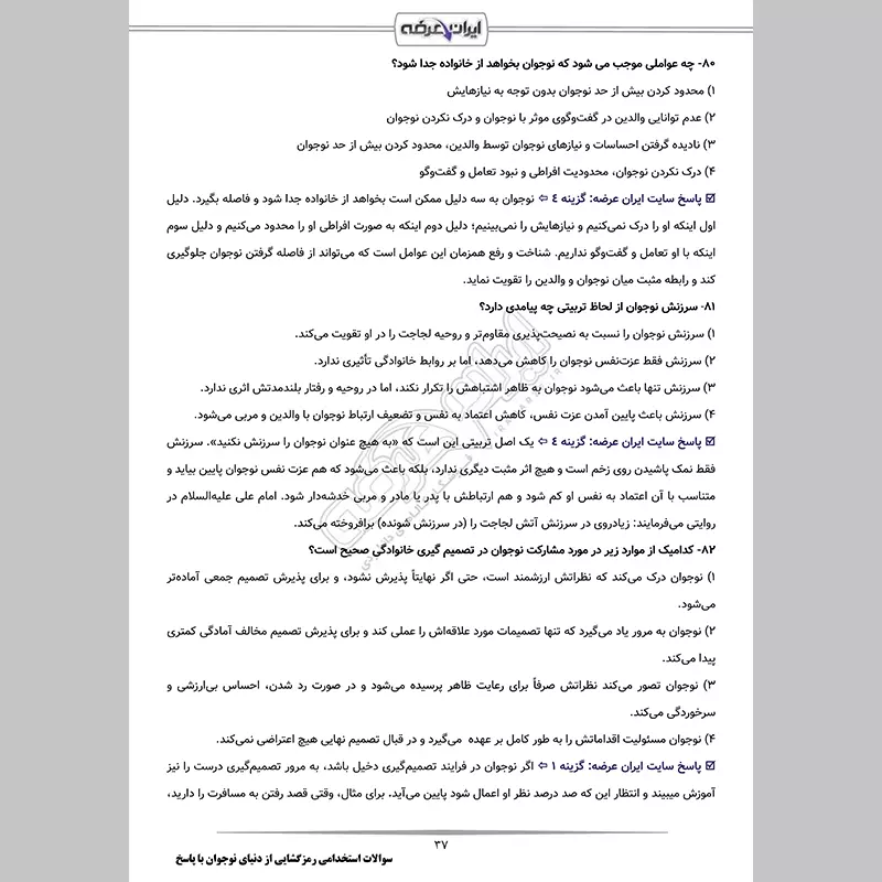 سوالات استخدامی رمزگشایی از دنیای نوجوان شامل 94 سوال تالیف ایران عرضه با پاسخنامه تشریحی