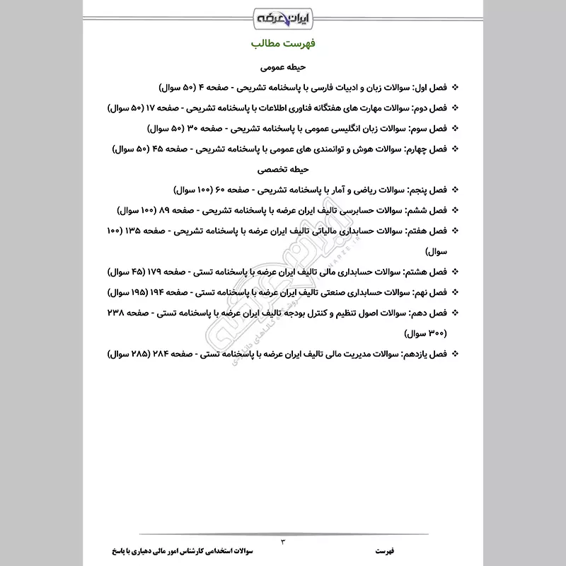 • فصل 10: سوالات اصول تنظیم و کنترل بودجه تالیف ایران عرضه با پاسخنامه تستی - صفحه 238 (300 سوال)