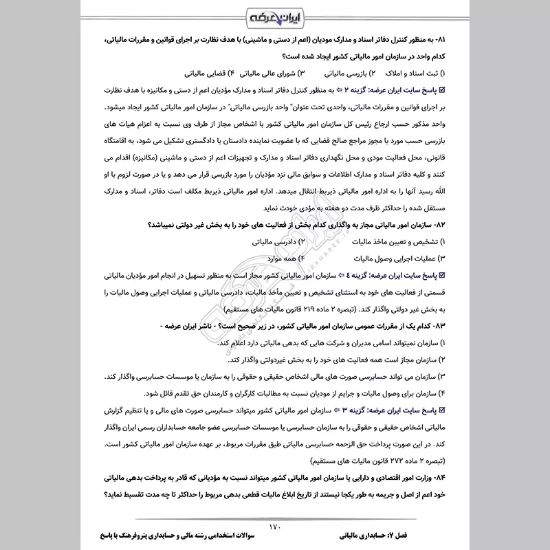 • فصل 7: سوالات حسابداری مالیاتی تالیف ایران عرضه - صفحه 135 (100 سوال)