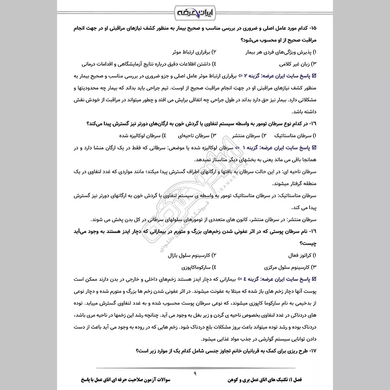سوالات آزمون صلاحیت حرفه ای پرستاری با جواب