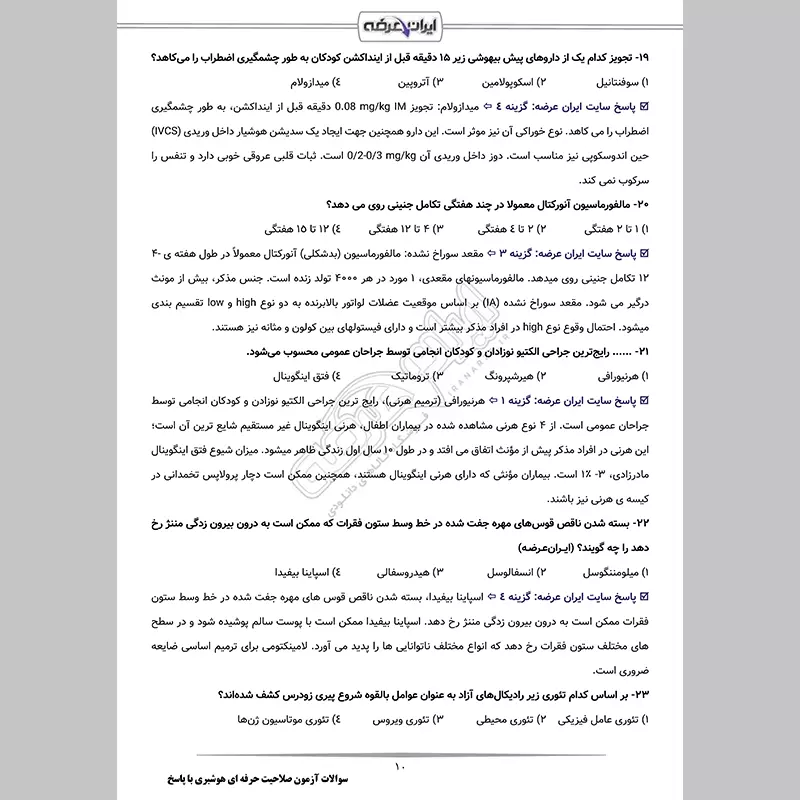 سوالات آزمون صلاحیت حرفه ای پرستاری با جواب