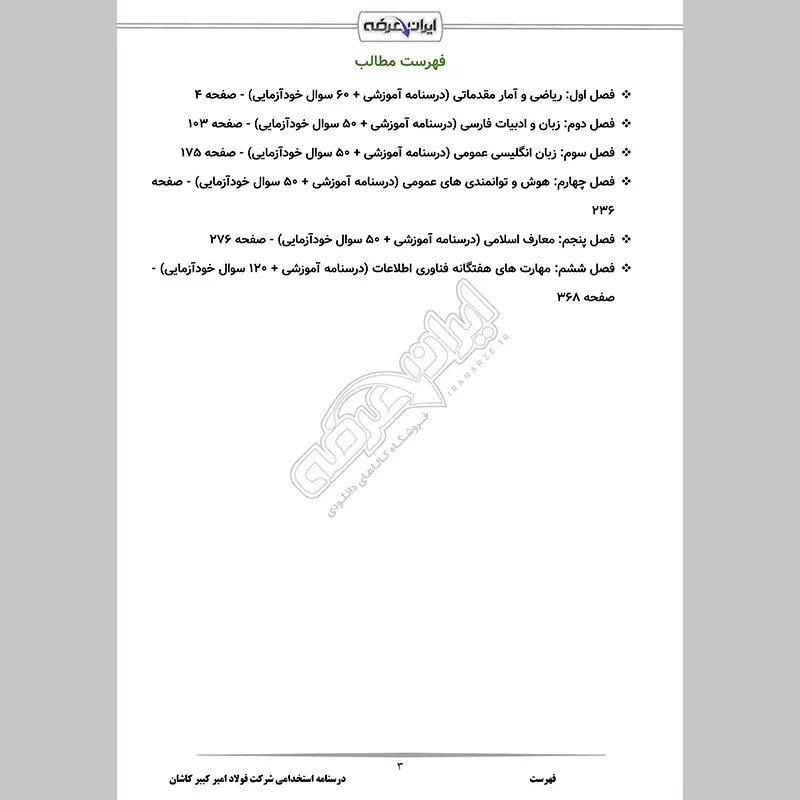 گروه آموزشی ایران عرضه اقدام به ارائه بسته ای جدید برای درسنامه آزمون استخدامی شرکت فولاد امیر کبیر کاشان نموده است. این محصول شامل جزوه آموزشی، نکات مهم و سوالات خودآزمایی آزمون استخدامی شرکت فولاد امیر کبیر کاشان می باشد که در دو نسخه pdf و چاپی قابل دریافت است. کارشناسان ما بر این باورند که این مجموعه عاملی مهم برای آمادگی شما در این آزمون بوده و قدمی مهم برای موفقیت در آن خواهد بود. با مطالعه این جزوه آموزشی در زمان کوتاه مهم ترین مطالب منابع آزمون استخدامی شرکت سیمان آبیک را فرا خواهید گرفت.