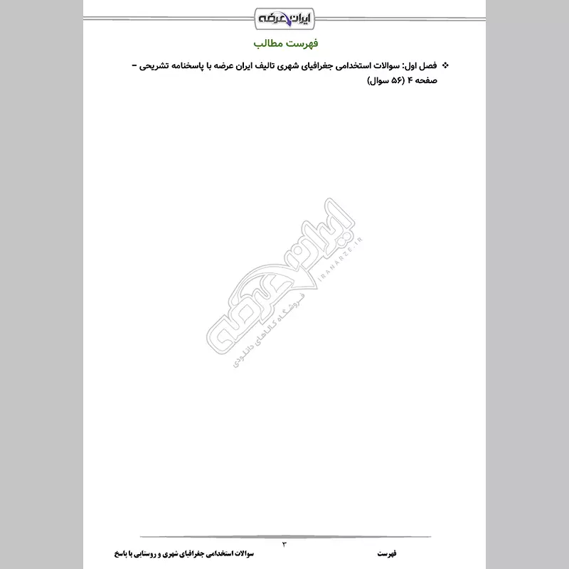 • فصل 1: سوالات استخدامی جغرافیای شهری  – صفحه 4 (56 سوال)