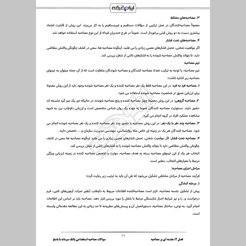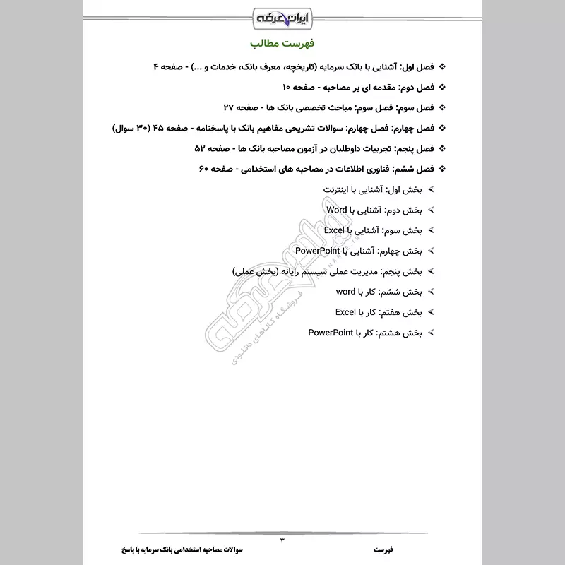 گروه آموزشی ایران عرضه اقدام به ارائه بسته ای جدید و بسیار کامل از سوالات پرتکرار به همراه درسنامه برای مصاحبه استخدامی بانک سرمایه نموده است. این بسته شامل گلچینی از سوالات تخصصی در زمینه های مربوط به مسائل مختلف بانک ها و موسسات مالی و اعتباری به همراه پاسخنامه تشریحی می باشد. از مزیت های اصلی این بسته ارائه جزوه ویژه آشنایی با بانک پاسارگاد می باشد. کارشناسان ما بر این باورند که این مجموعه عاملی مهم برای آمادگی شما در مرحله مصاحبه بوده و قدمی مهم برای موفقیت در آن خواهد بود.