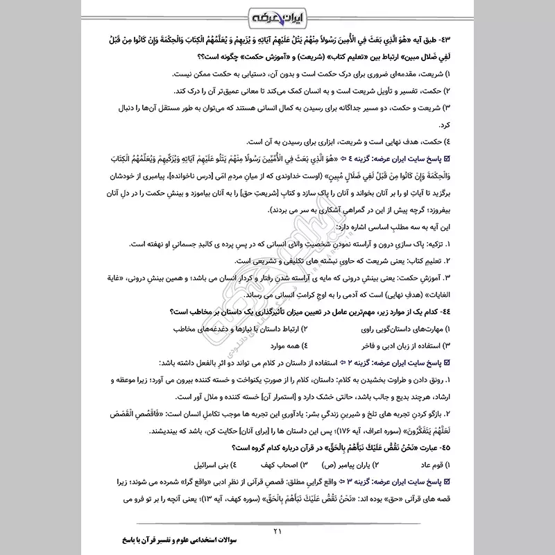 سوالات استخدامی دبیری معارف اسلامی با جواب (تخصصی)