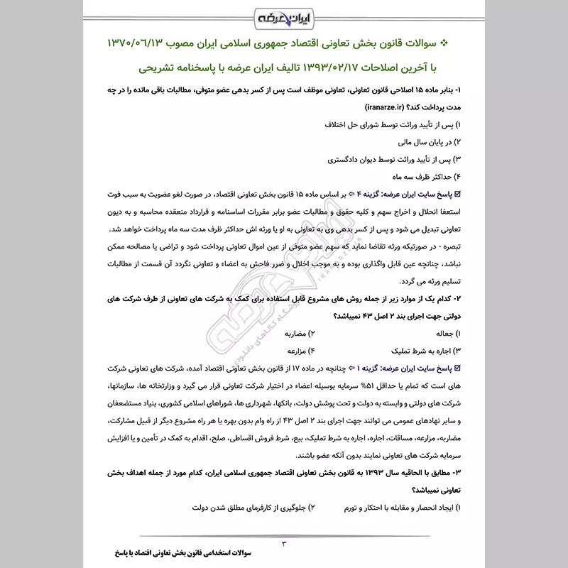 سوالات استخدامی کارشناس امور تعاونی با جواب