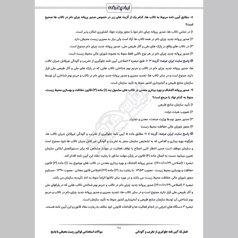 سوالات استخدامی کارشناس پایش محیط زیست با جواب