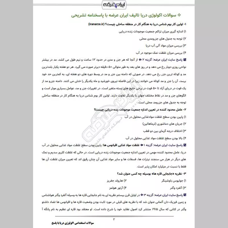 سوالات استخدامی آلودگی دریا با جواب