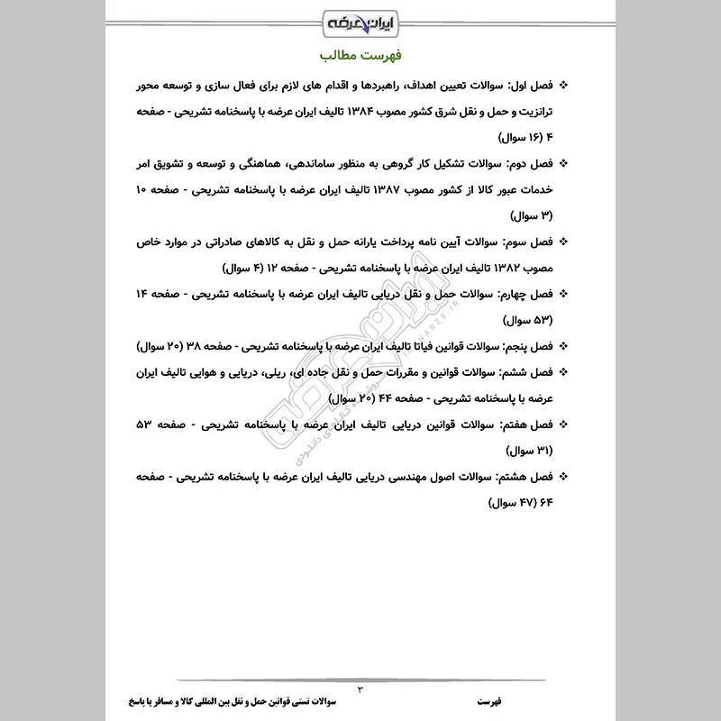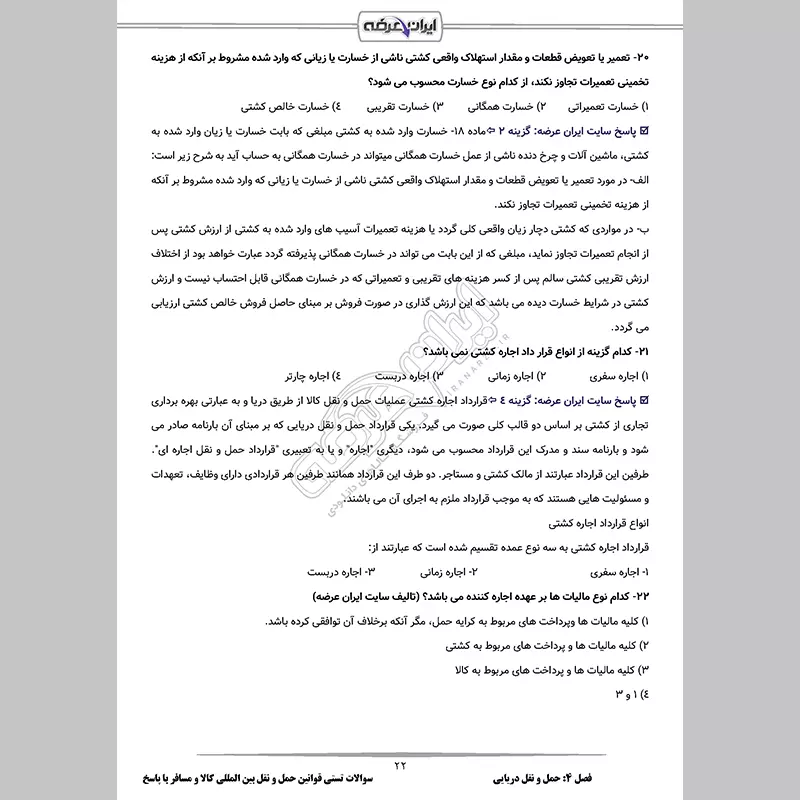 سوالات آزمون تاسیس شرکت حمل و نقل بین المللی کالا با جواب