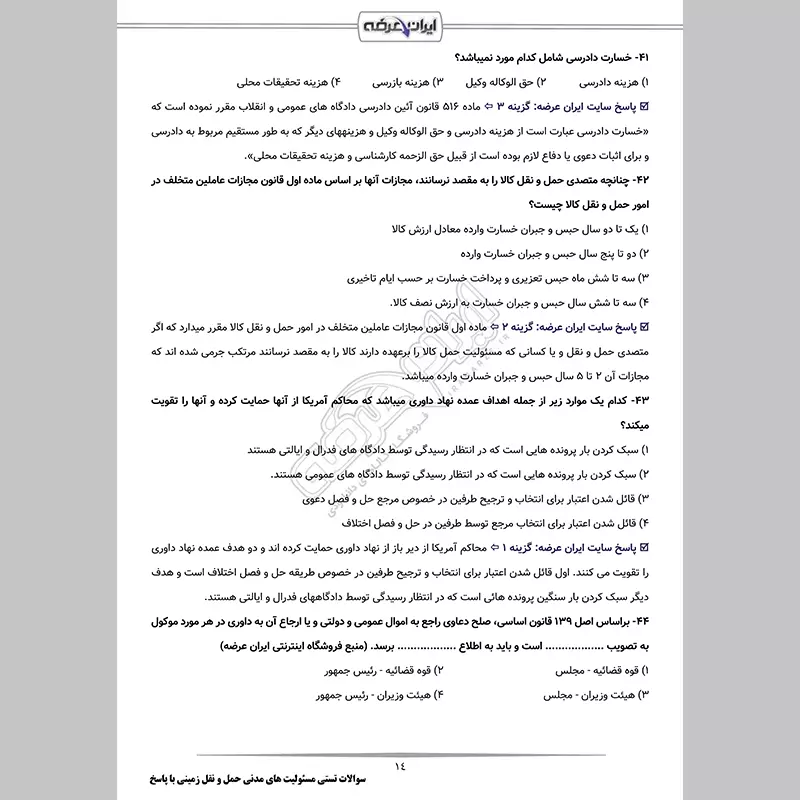سوالات آزمون تاسیس شرکت حمل و نقل بین المللی کالا با جواب