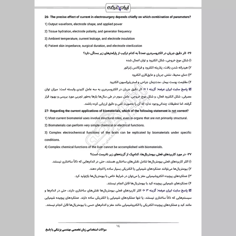 سوالات استخدامی کارشناس تجهیزات پزشکی با جواب