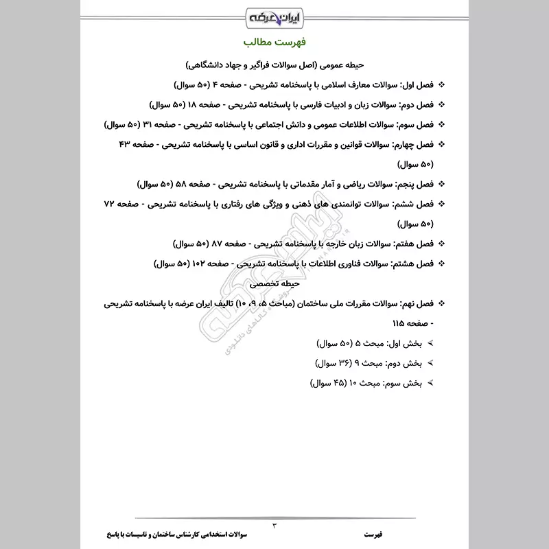 سوالات استخدامی کارشناس ساختمان و تاسیسات شامل 531 سوال با پاسخنامه تشریحی به شرح زیر: