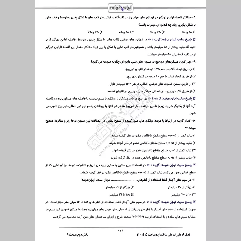 - فصل 9: سوالات مقررات ملی ساختمان (مباحث 5، 9، 10) تالیف ایران عرضه - صفحه 115