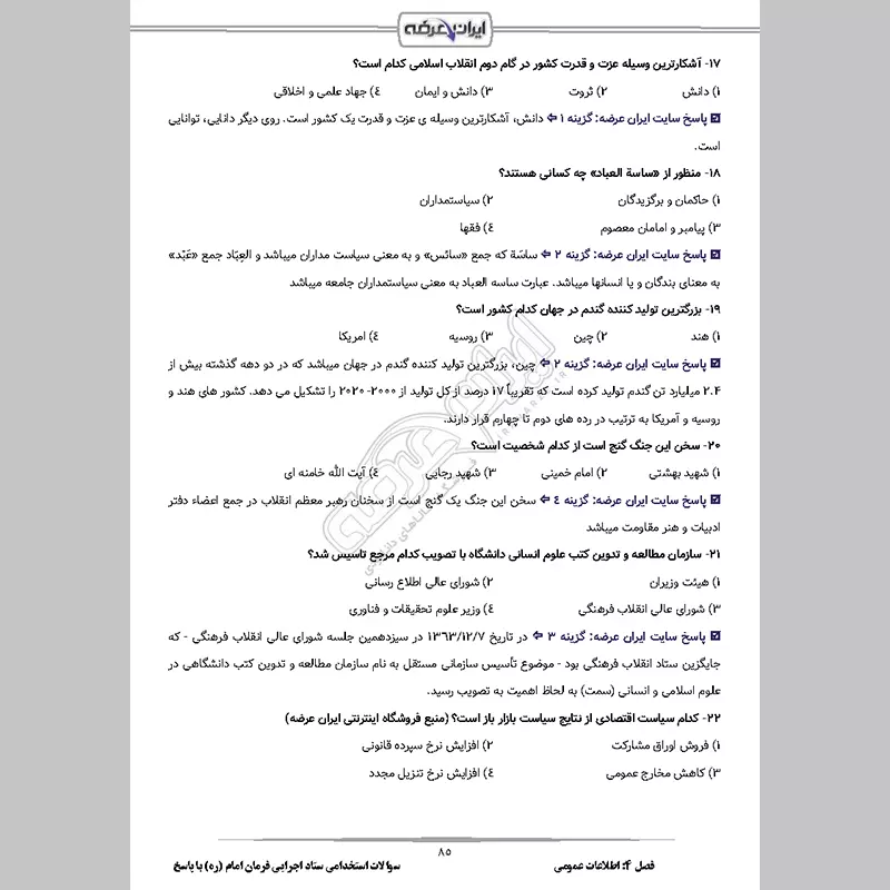 سوالات دروس عمومی آزمون های استخدامی با جواب (10 سال اخیر)
