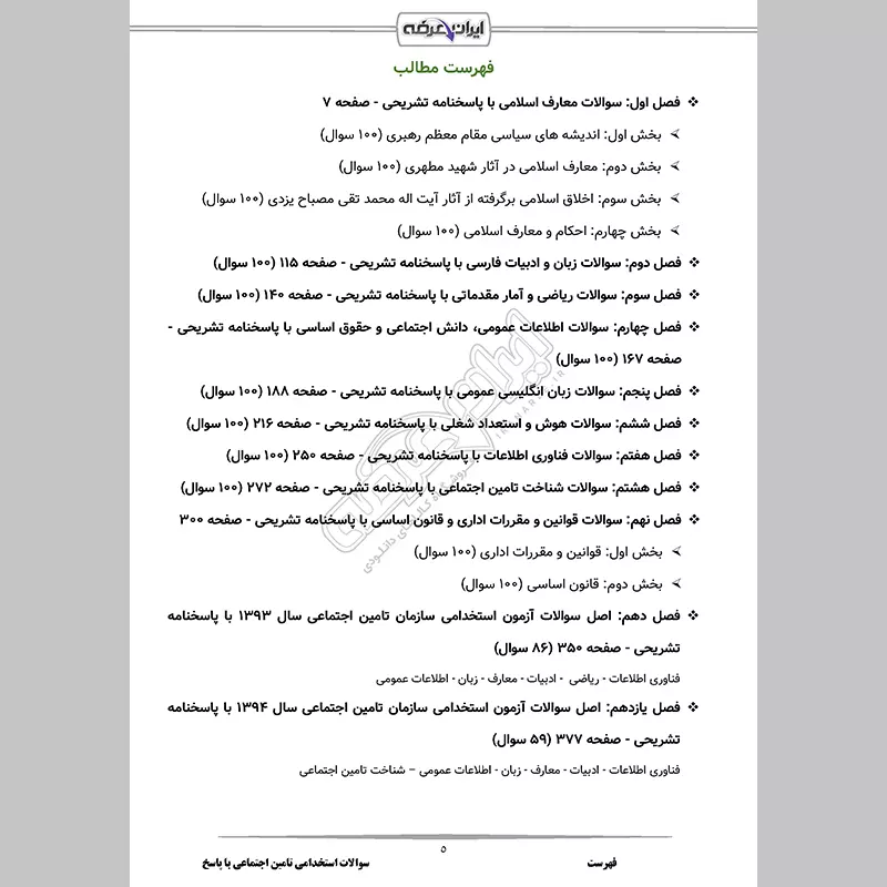 - فصل 8: سوالات شناخت تامین اجتماعی - صفحه 272 (100 سوال)