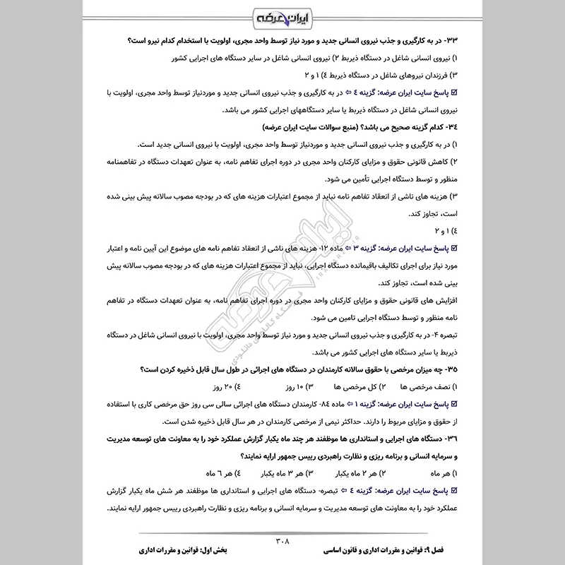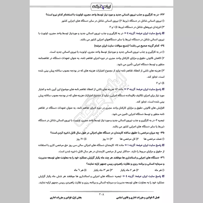 - فصل 9: سوالات قوانین و مقررات اداری و قانون اساسی - صفحه 300