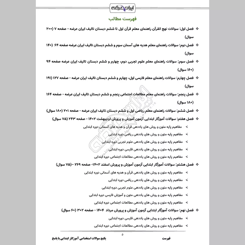 1404/11/02 اضافه شدن فصل جدید (اصل سوالات آموزگار ابتدایی مرداد 1404)