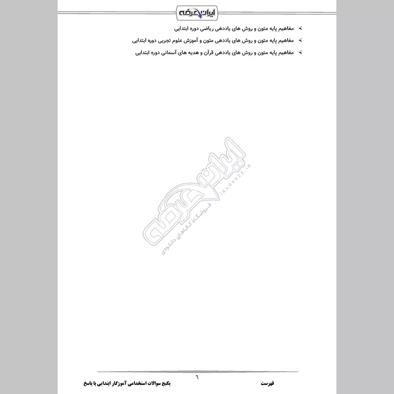 سلام روز بخیر. جهت دریافت سوالات عمومی و اختصاصی آموزش و پرورش و سوالات تخصصی آزمون آموزگاری با پاسخنامه می بایست به بخش خرید از لینک های ارسال شده مراجعه نمایید: