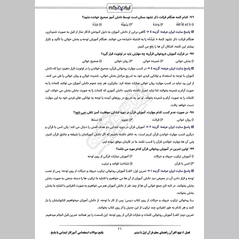 پکیج جامع سوالات استخدامی آموزگار ابتدایی با جواب