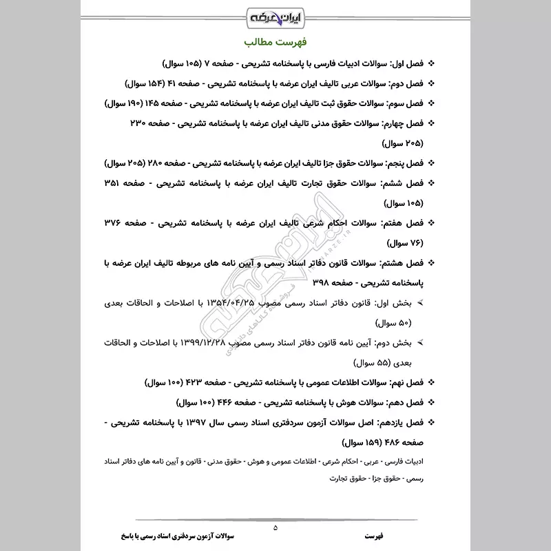 - فصل 8: سوالات قانون دفاتر اسناد رسمی و آیین نامه های مربوطه تالیف ایران عرضه - صفحه 398