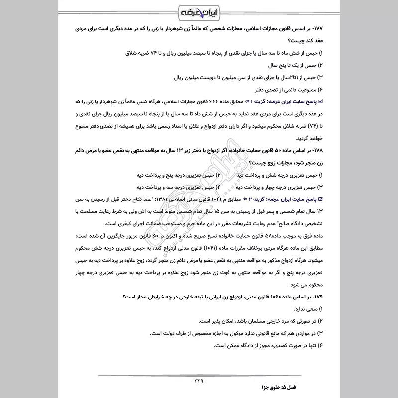 - فصل 4: سوالات حقوق مدنی تالیف ایران عرضه - صفحه 230 (205 سوال)