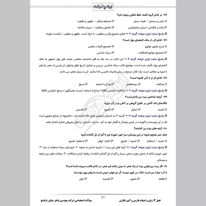 سوالات دروس عمومی آزمون های استخدامی با جواب (10 سال اخیر)