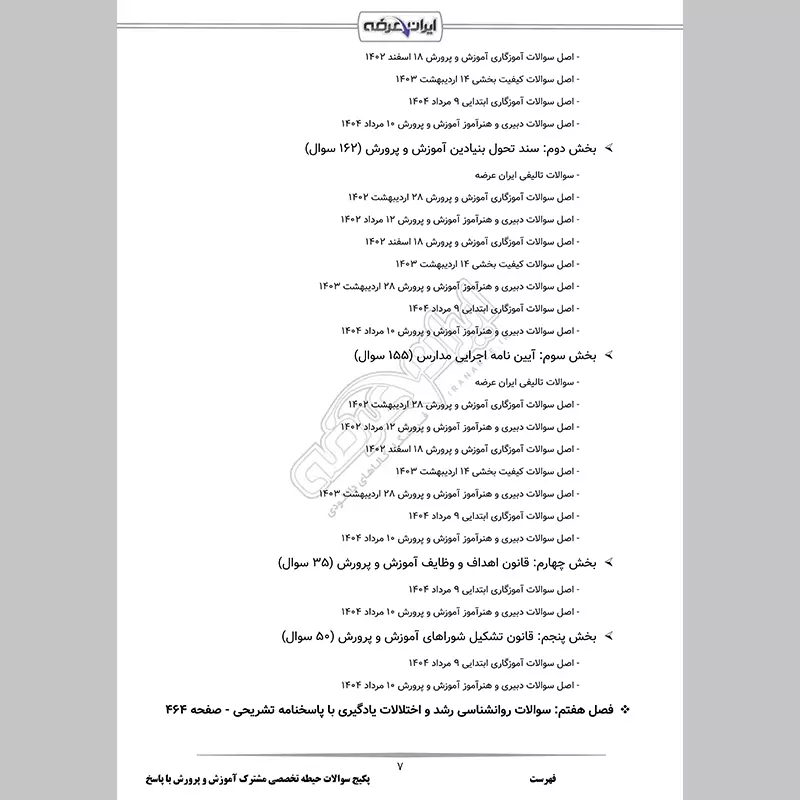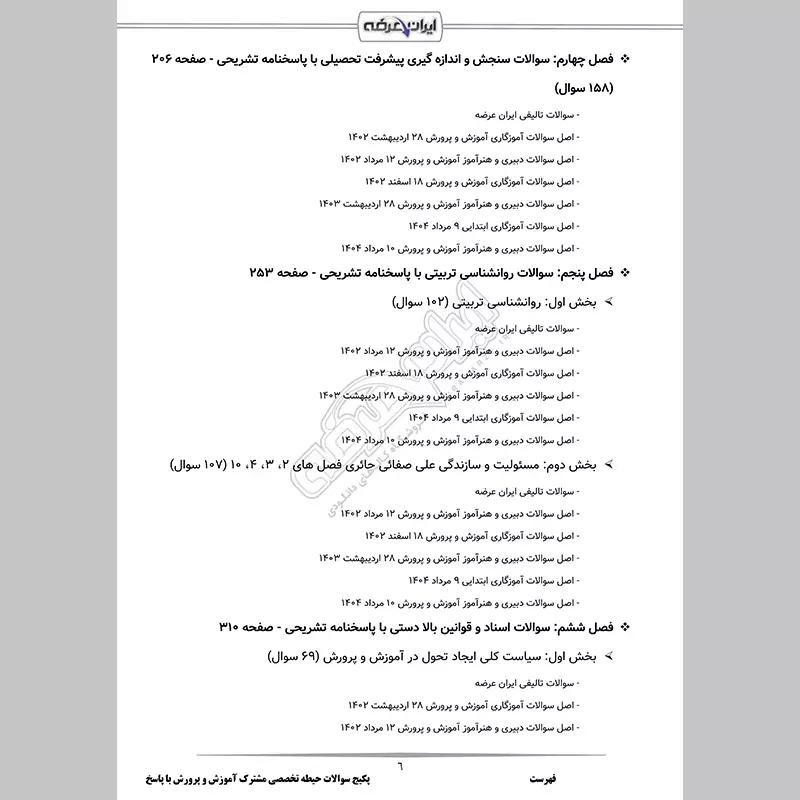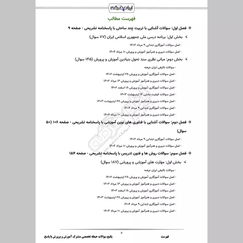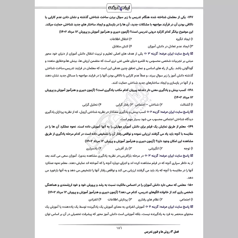 - بخش 1: مهارت های آموزشی و پرورشی (187 سوال)