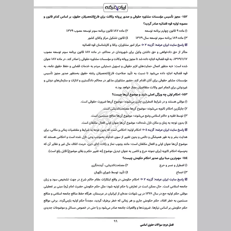پاسخسلام من فایل قانون اساسی رو خریدم ولی فقط سوال اول جواب داره بقیه بدون جواب هست