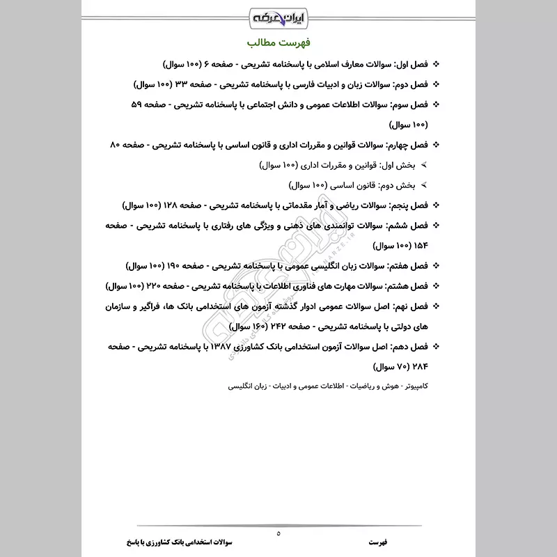 - فصل 9: اصل سوالات عمومی ادوار گذشته آزمون های استخدامی بانک ها، فراگیر و سازمان های دولتی - صفحه 242 (160 سوال)
